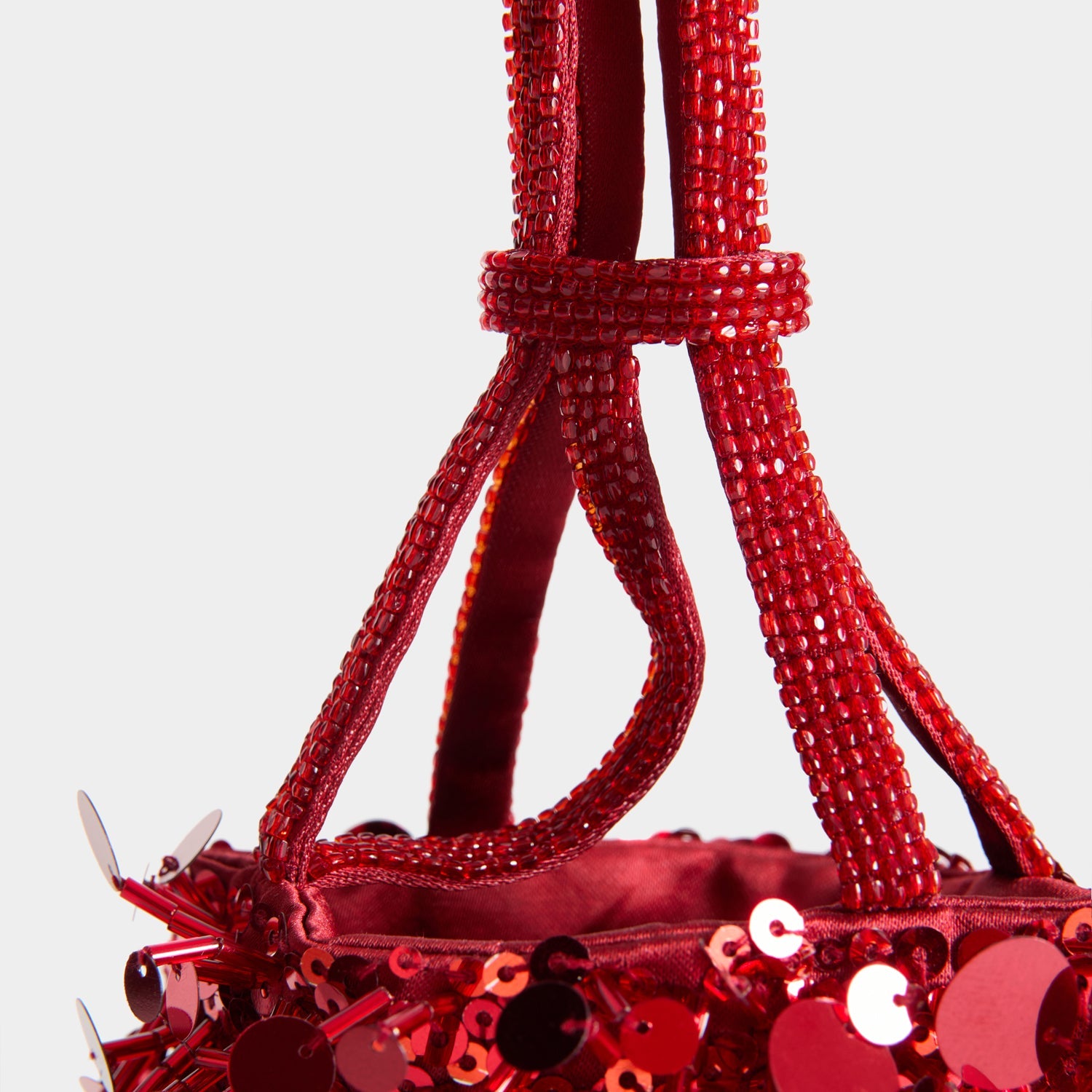 - DESCRIPTION- A playful nod to an iconic British brand, our Imperial Leather Mini Bucket bag is crafted from red satin and intricately embellished with tonal sequins and beads. It has two beaded top handles and room inside for evening essentials, such as a phone, lipstick and card case. - Anya Brands makes the ordinary, extraordinary. Inspired by great British brands, these limited-edition pieces have become collectors’ items, even taking permanent residence in London’s V&A. - Item number: 5050925204354