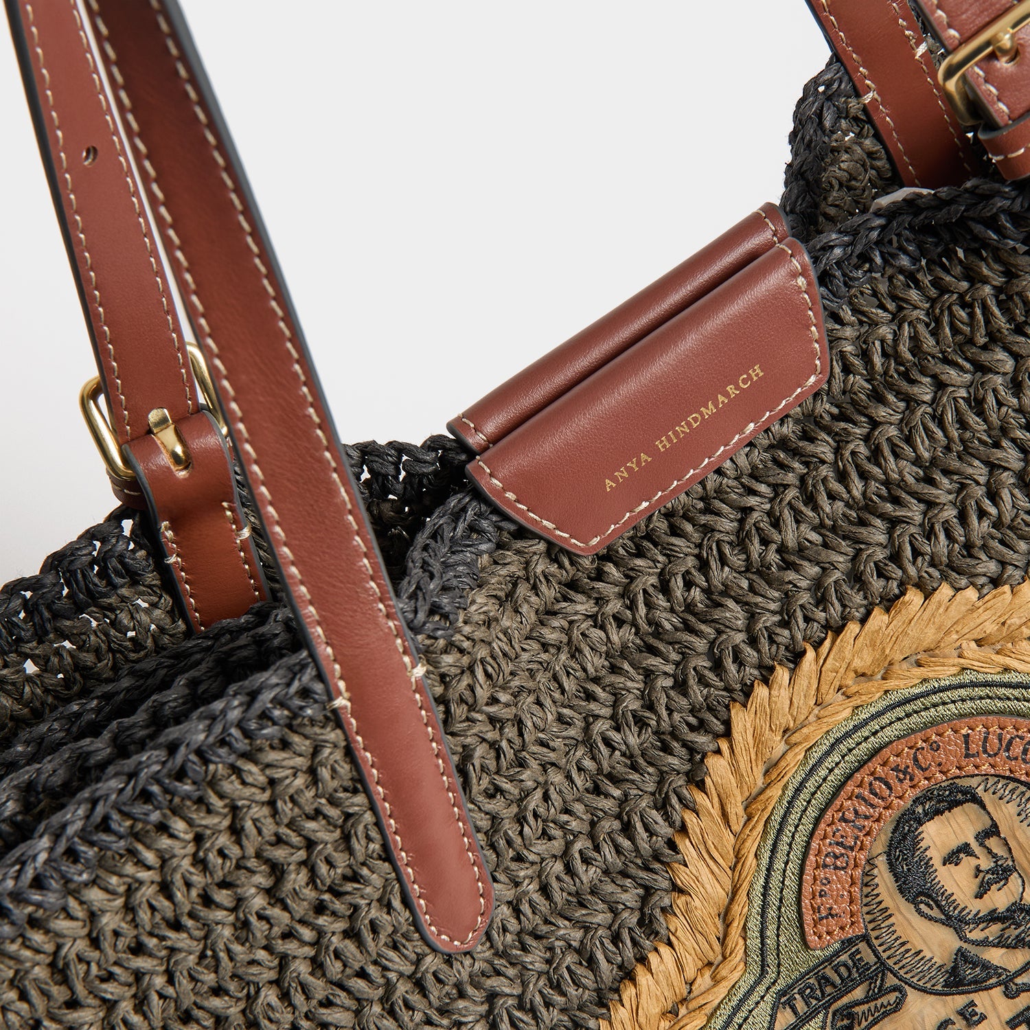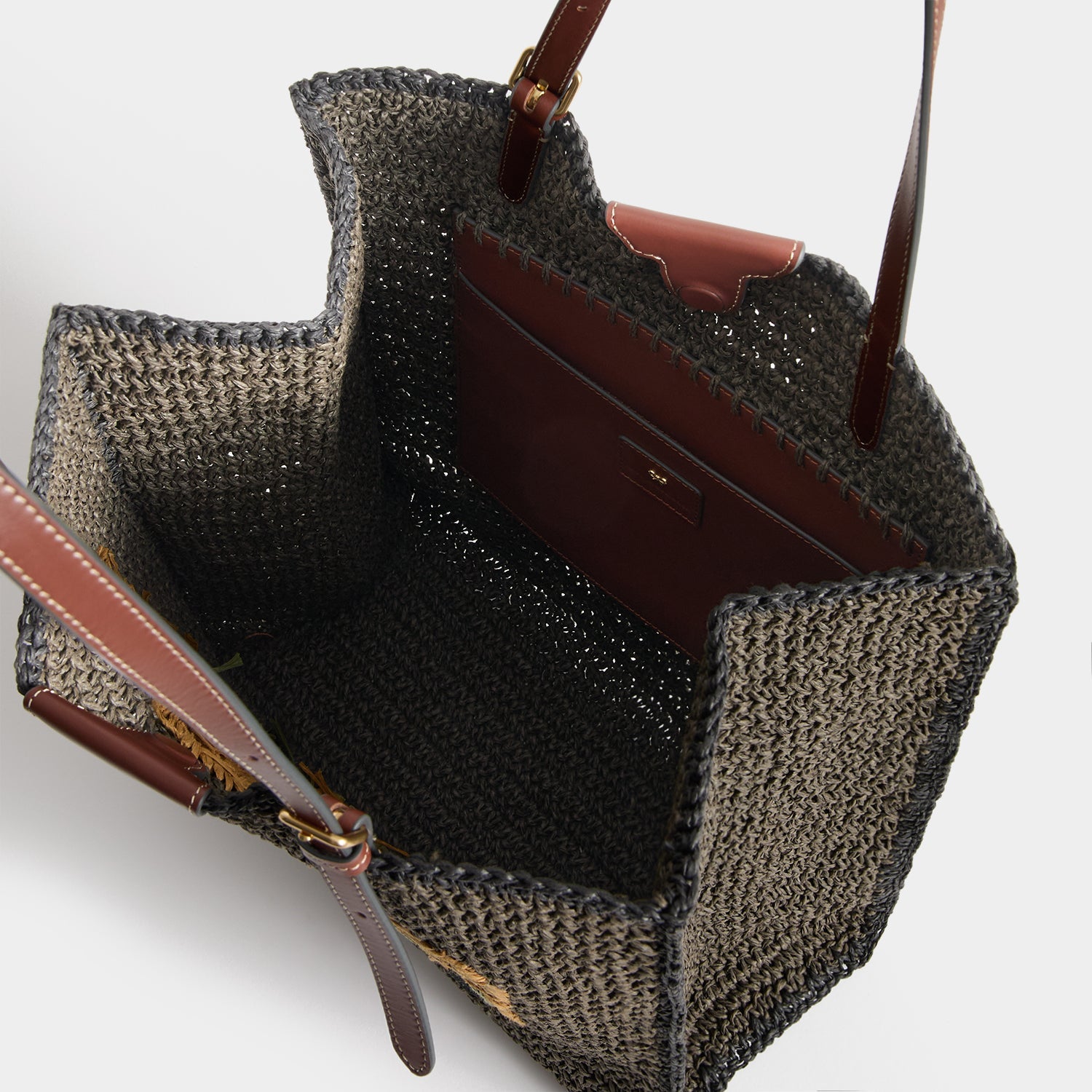 Materials: Raffia, Smooth Leather