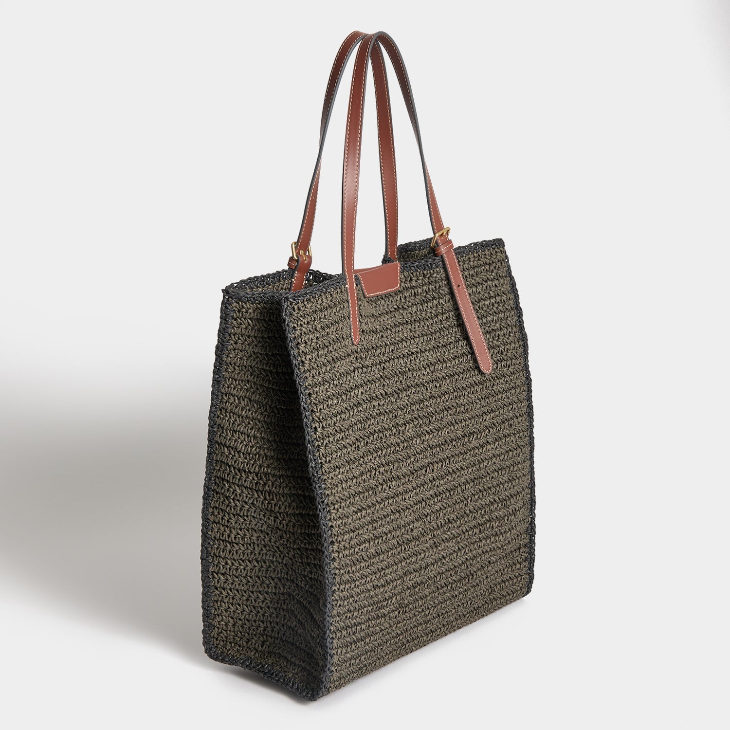 The instantly recognisable Filippo Berio logo, woven in khaki paper raffia – our classic N/S Tote silhouette comes with adjustable, calf-leather shoulder straps and a magnetic closure. It’s the perfect versatile alternative to a classic basket bag, with enough space to carry a book, tablet, sunglasses and phone, plus a safe slip pocket for safety.