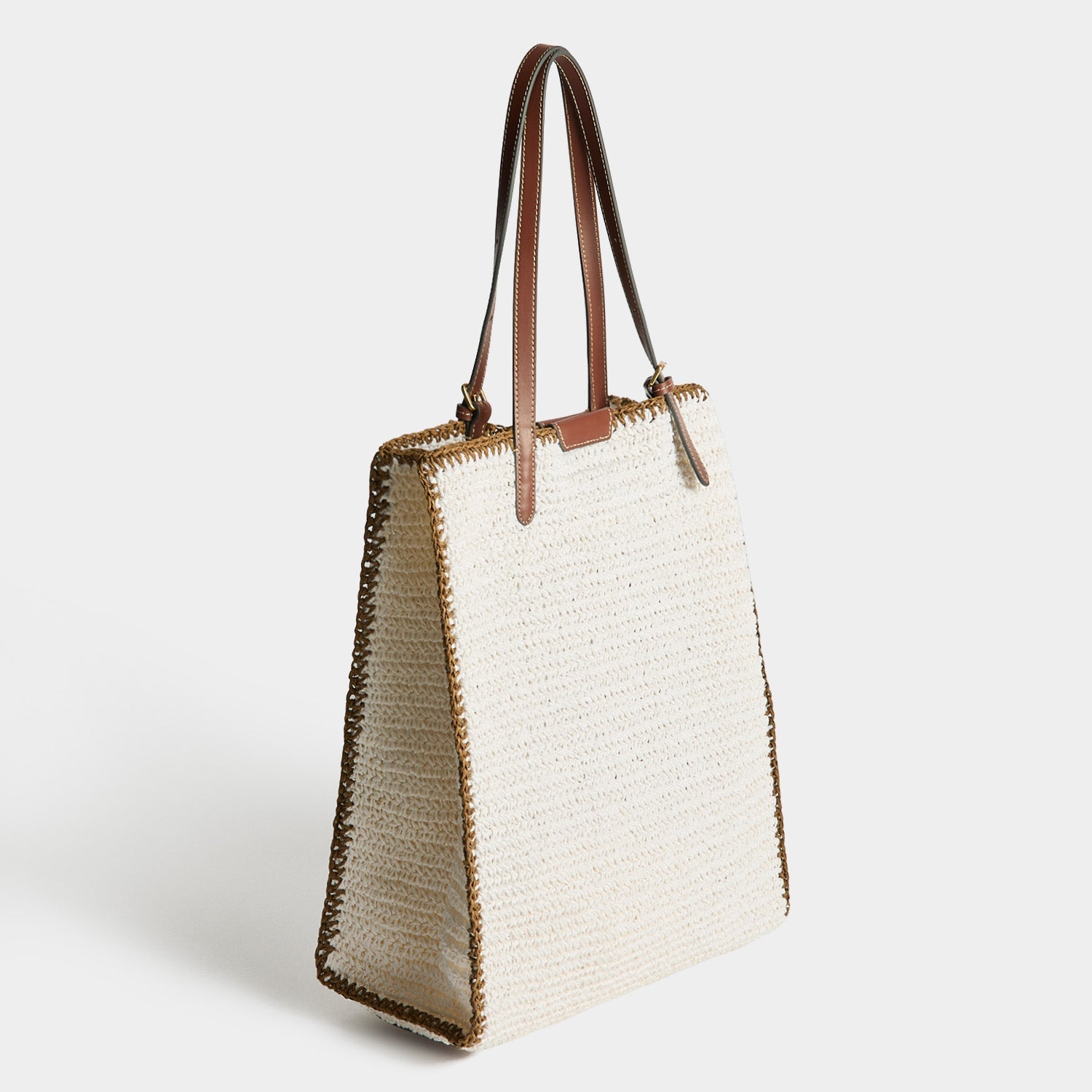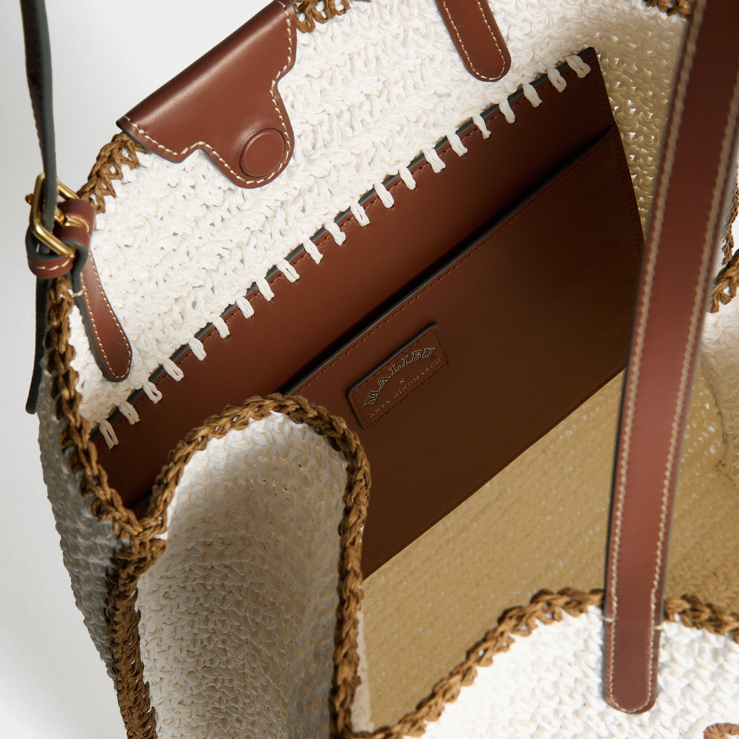 The Malibu N/S Tote is a tropical take on an Anya favourite, handwoven from chalk-hued paper raffia with artwork from one of our favourite drinks. Adjust the shoulder straps to your ideal length, keeping your sunglasses, current book and sun lotion in the main compartment, and smaller things in the leather slip pocket. The magnetic closure ensures everything is kept secure yet easily reachable.