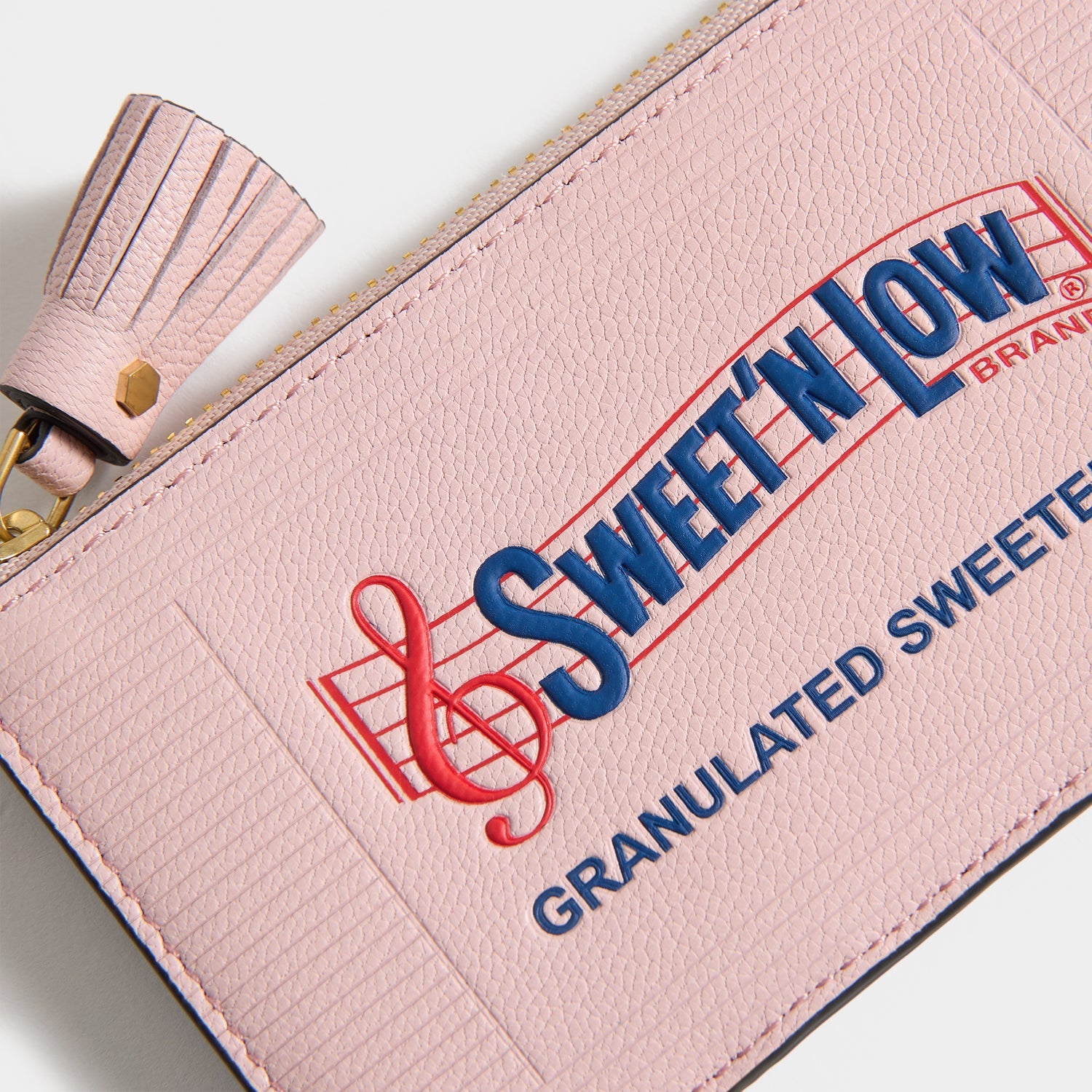 External features: Sweet N Low logo, tassel zip pull, slots for cards, Anya Hindmarch bow