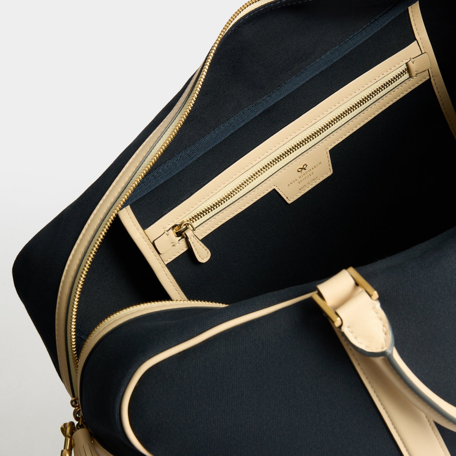 Inside details: Separate zipped compartment with embossed Anya Hindmarch logo