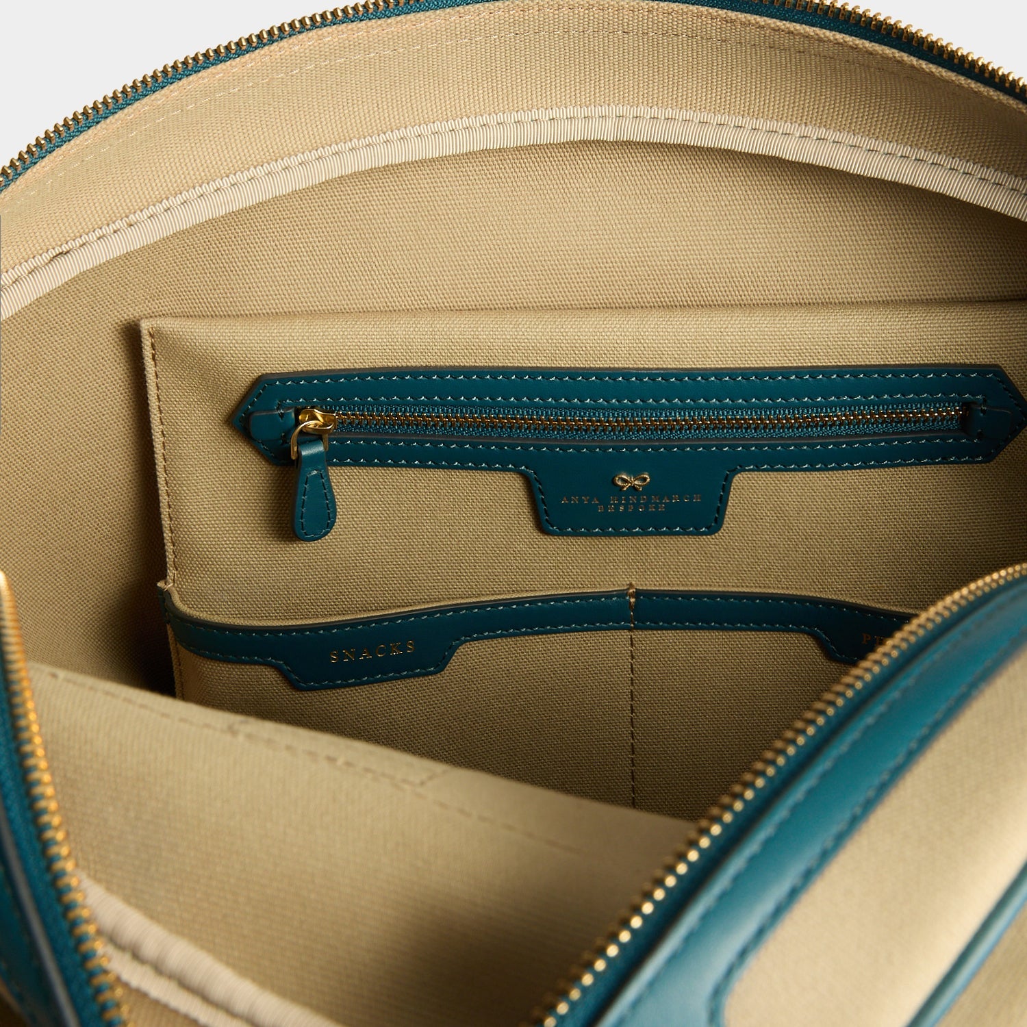 Inside details: Separate zipped compartment with embossed Anya Hindmarch logo