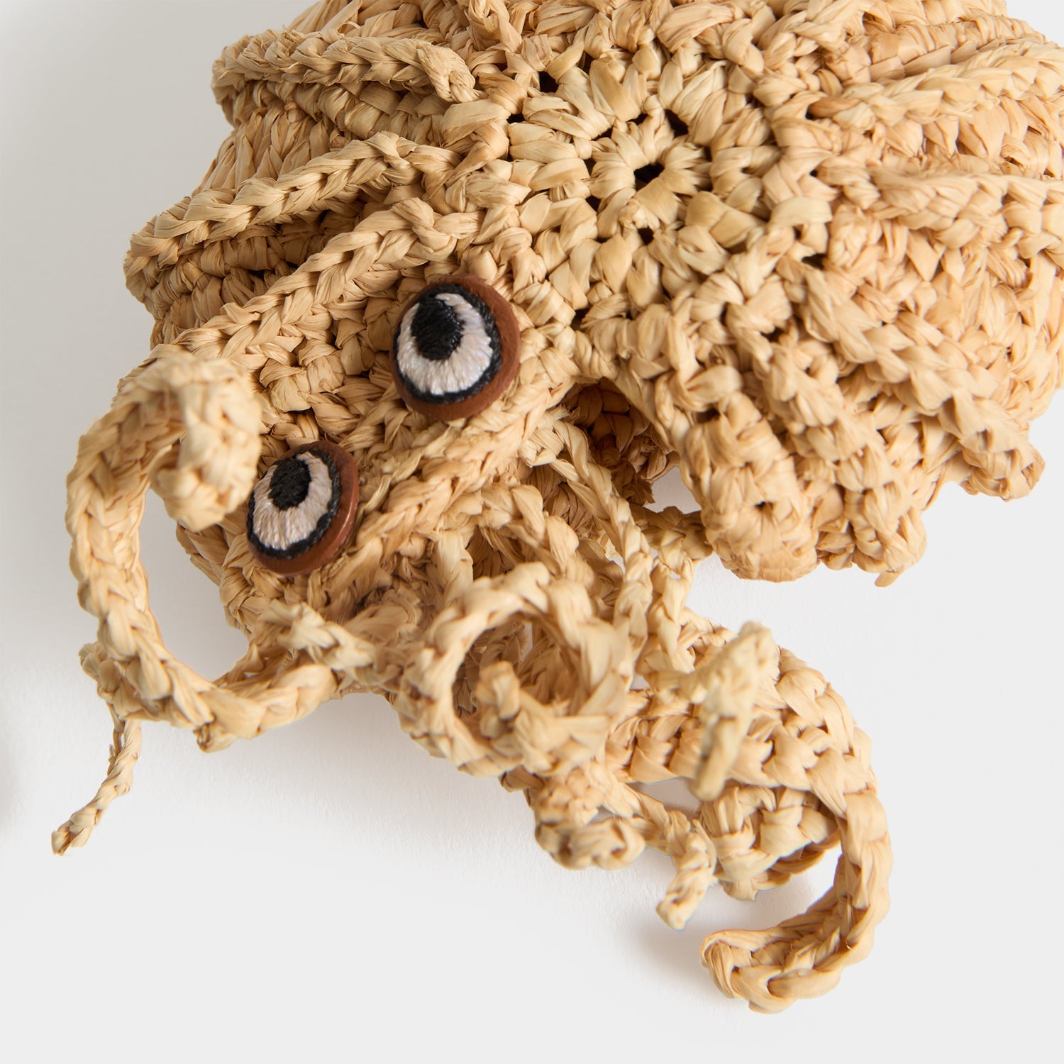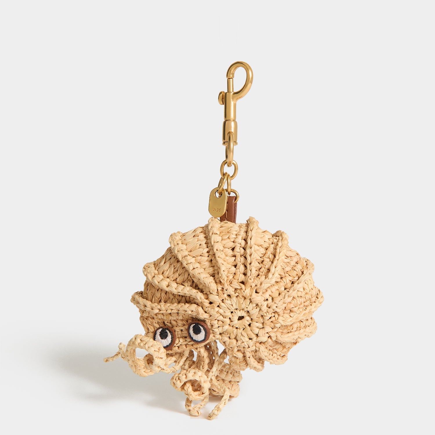 The Hermit Crab Charm makes the perfect addition to a holiday tote or basket bag. Intricately woven from natural raffia, it has a ridged ‘shell’, curled legs and embroidered leather eyes, as well as a gold-tone clip attachment.