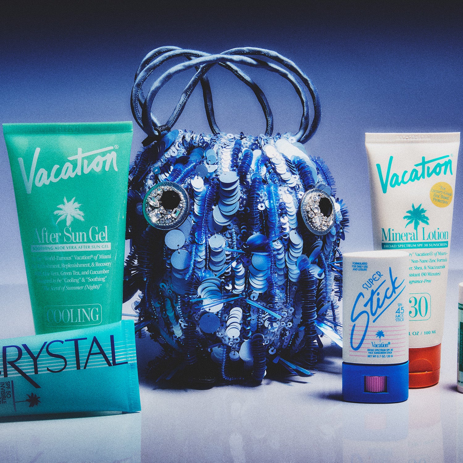 External features: Sequins and beads, leather fins, crystal-encrusted eyes, drawstring ties, detatchable long chain strap