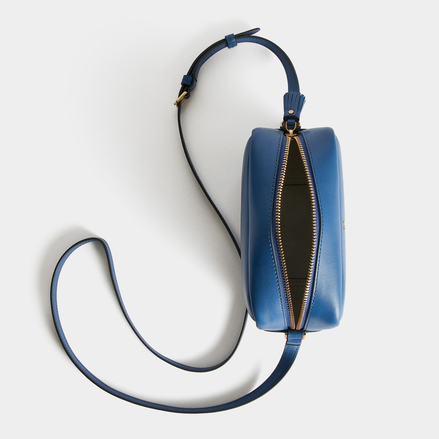 External features: Zip closure with tassel, adjustable strap