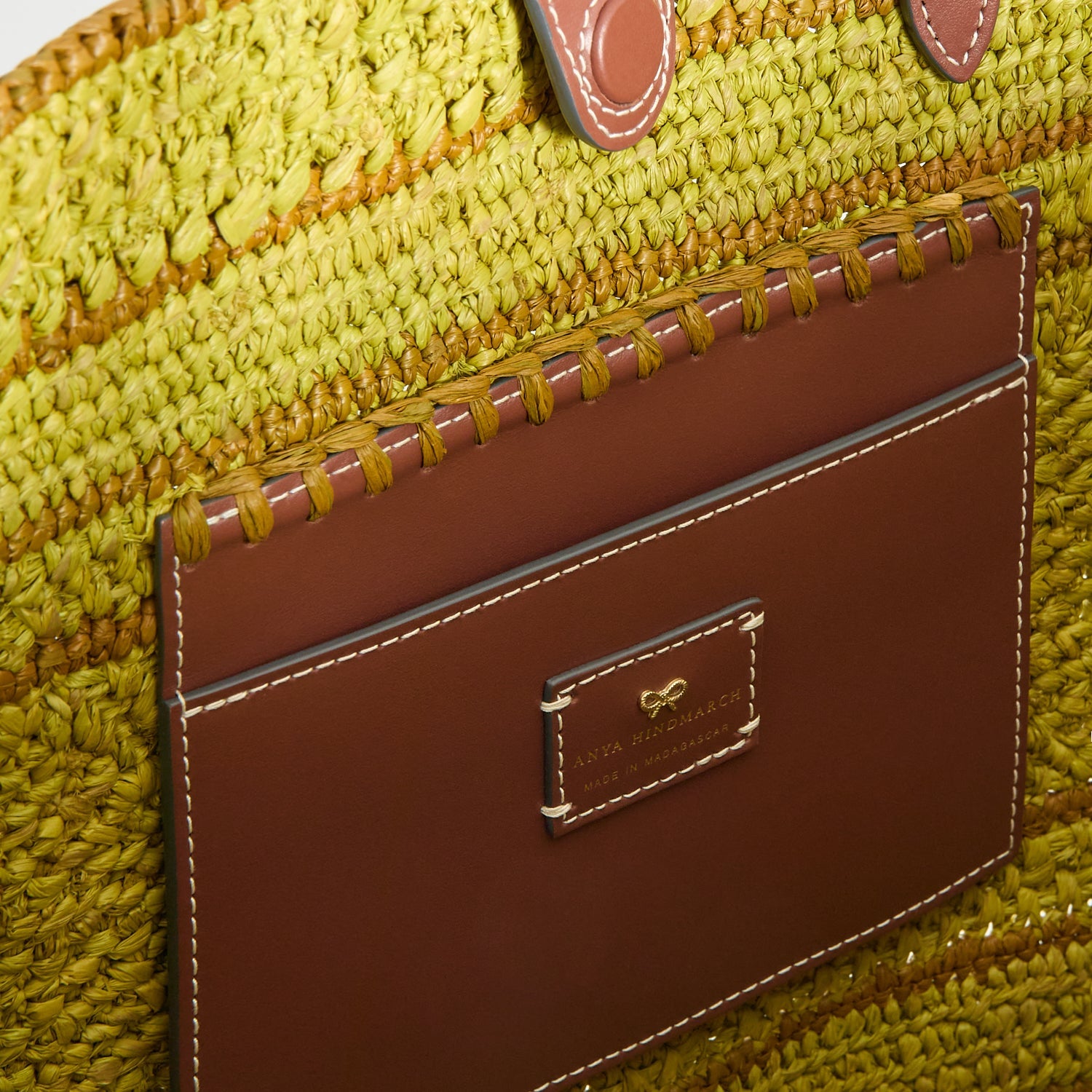 Materials: Natural Raffia, Smooth Leather