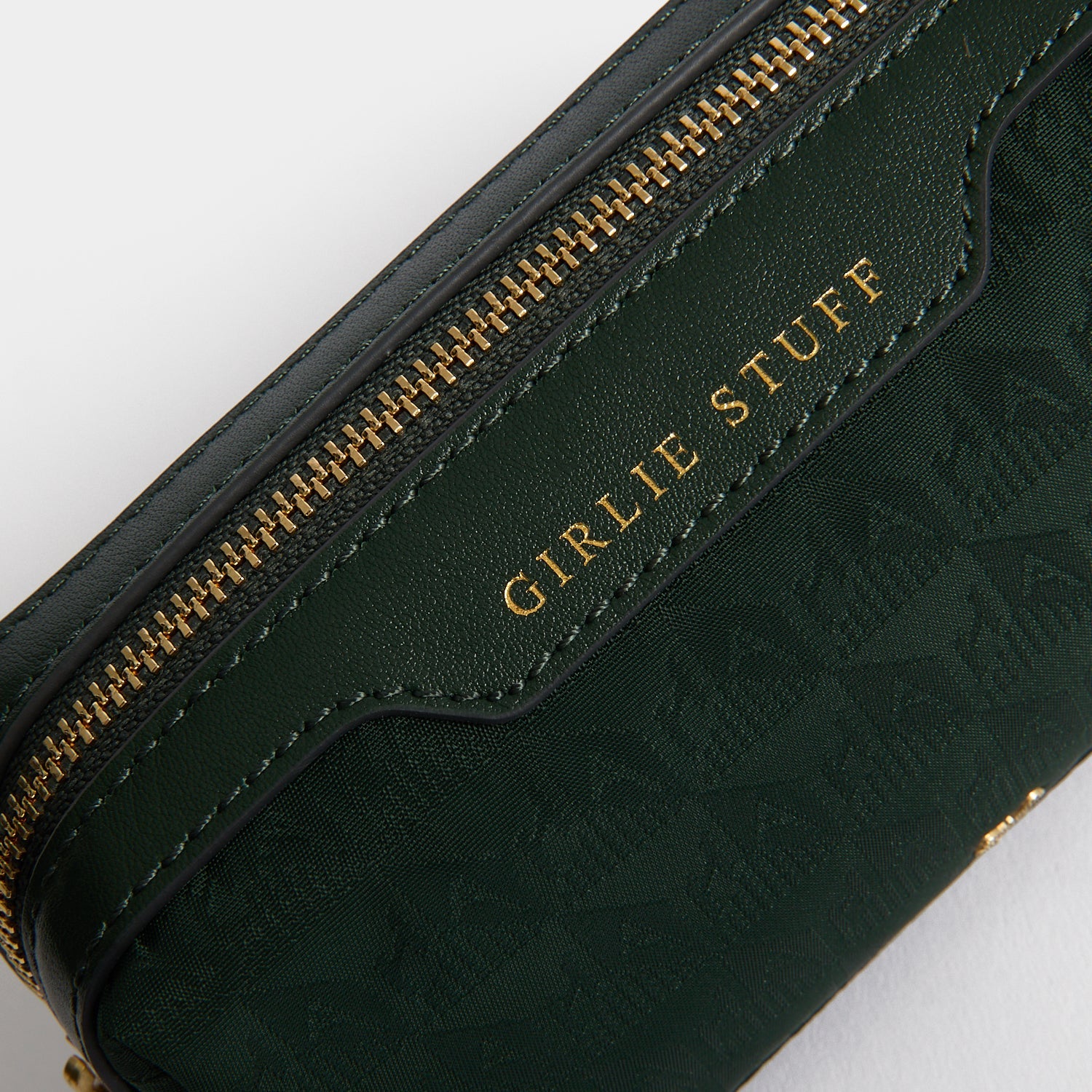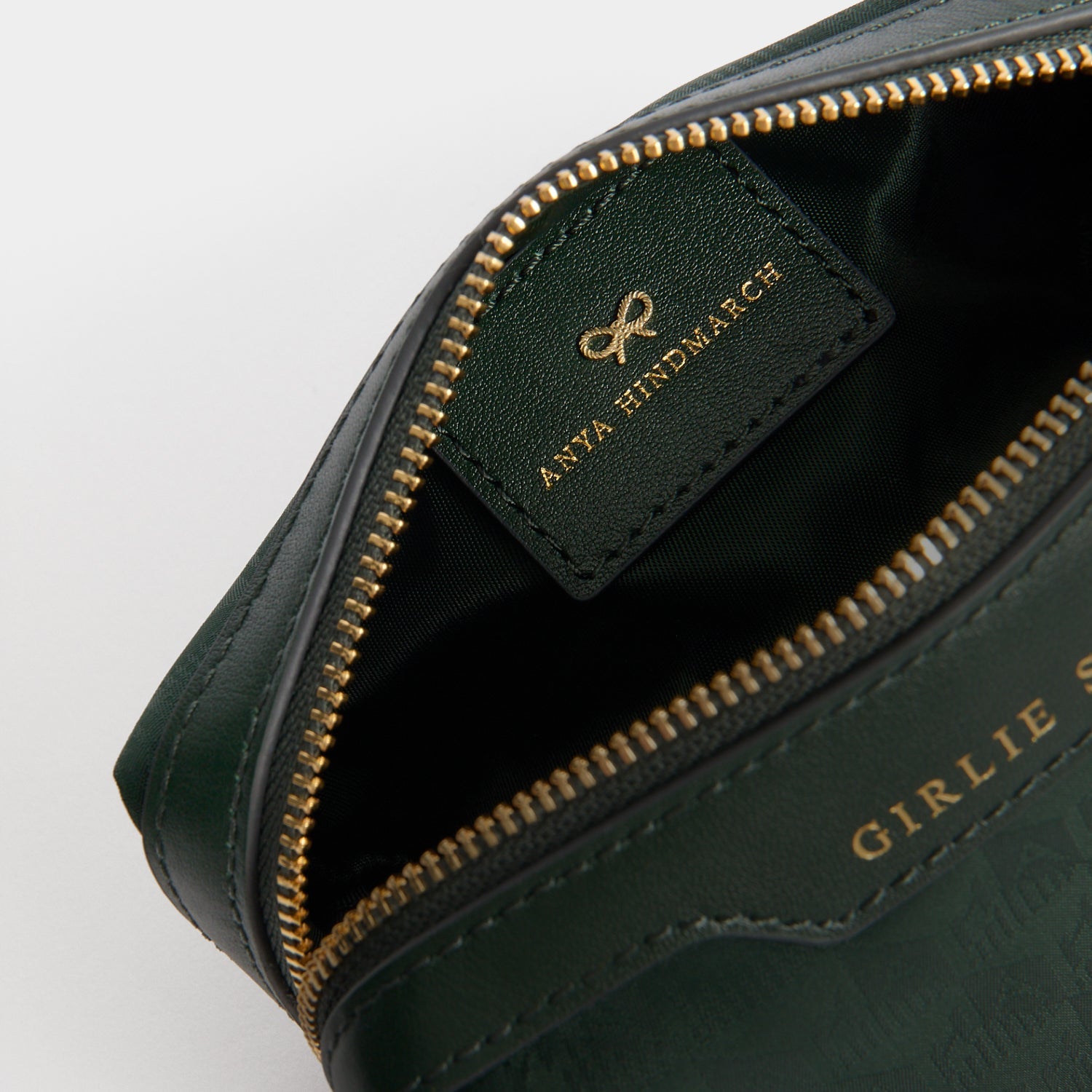 Made from monogrammed nylon, the latest incarnation of our classic Girlie Stuff Pouch is surrounded by smooth-leather trims for a hardy, durable silhouette. Small enough to stow into your suitcase or overnight bag, but still spacious enough to store your essentials inside, this handy hold-all is perfect for keeping those essential things close at hand - whether it’s spare bits of makeup, charging cables for long journeys or jewellery that you want to keep separated.