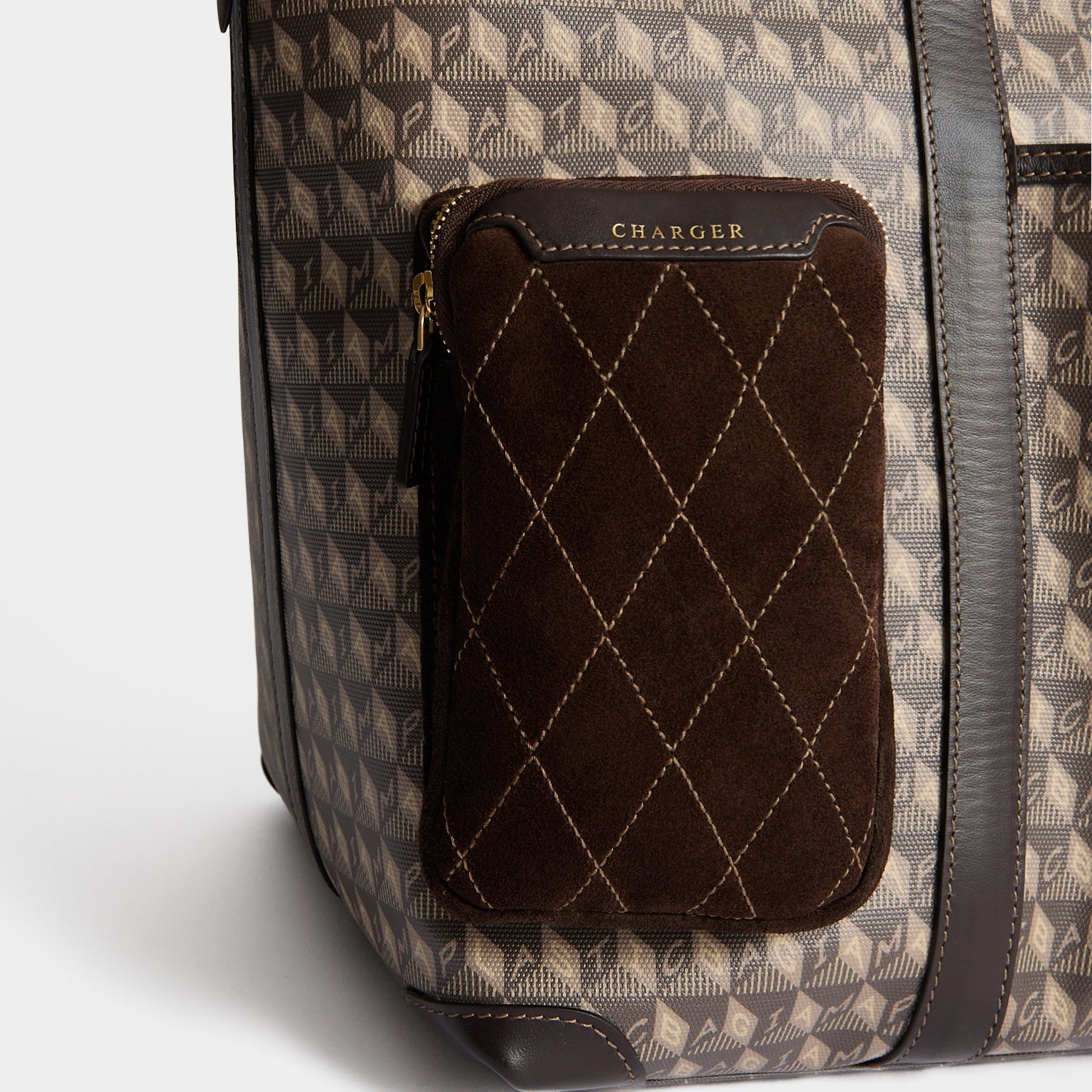 The I Am A Plastic Bag In-Flight tote has labelled sections for everything you’ll need on your travels. It’s crafted from an innovative, coated canvas that’s made from recycled plastic bottles. Your passport, important travel documents, charger and earphones all have their own dedicated pockets, and there’s space for a water bottle, a fob for keys, and a removable clear pouch for liquids. It also has a convenient sleeve to pull over the back of a luggage trolley.