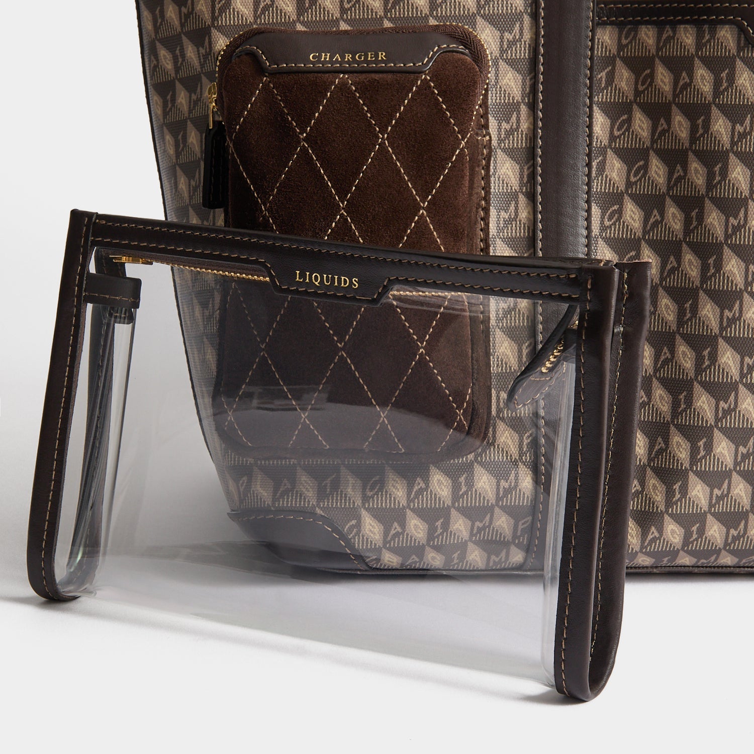 Internal features: Pocket for books or magazines with small pocket for bits and bobs, removable zipped clear pouch for liquids