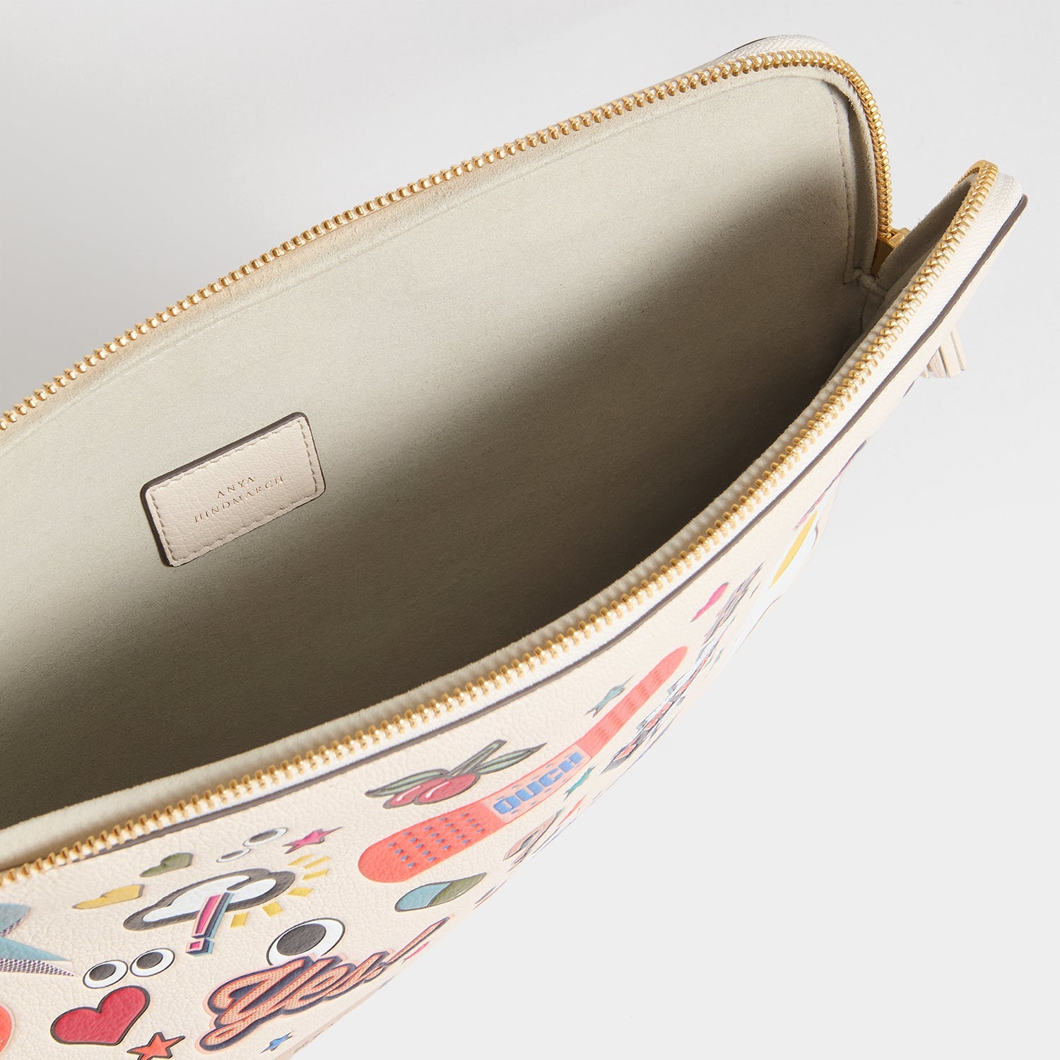 Make meetings more fun with the All Over Stickers Laptop Case, decorated with some of our favourite Anya motifs. It's crafted from chalk-hued capra leather and finished with a tassel-adorned zip.
