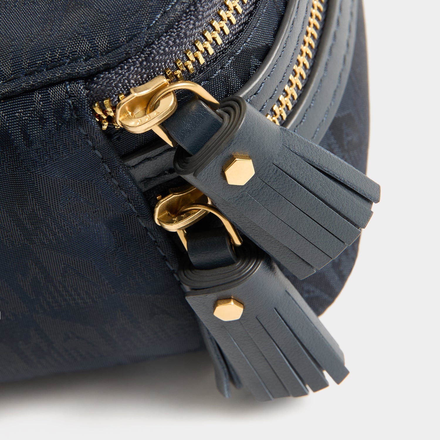 Internal features: Embossed fabric lining, patent leather patch logo, Anya Hindmarch gold bow