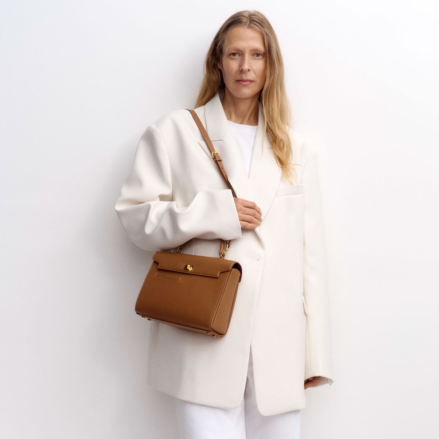 The Mortimer bag is beautifully crafted, inside and out. It is handmade in Florence from the finest, black box-calf leather, selected for both its gleam and durability. It has several compartments – one zipped, another with our handmade gold 'lip' – with pockets for your phone, cards, earphones and pen. Carry it by the top handle or style it cross-body by the optional long strap.