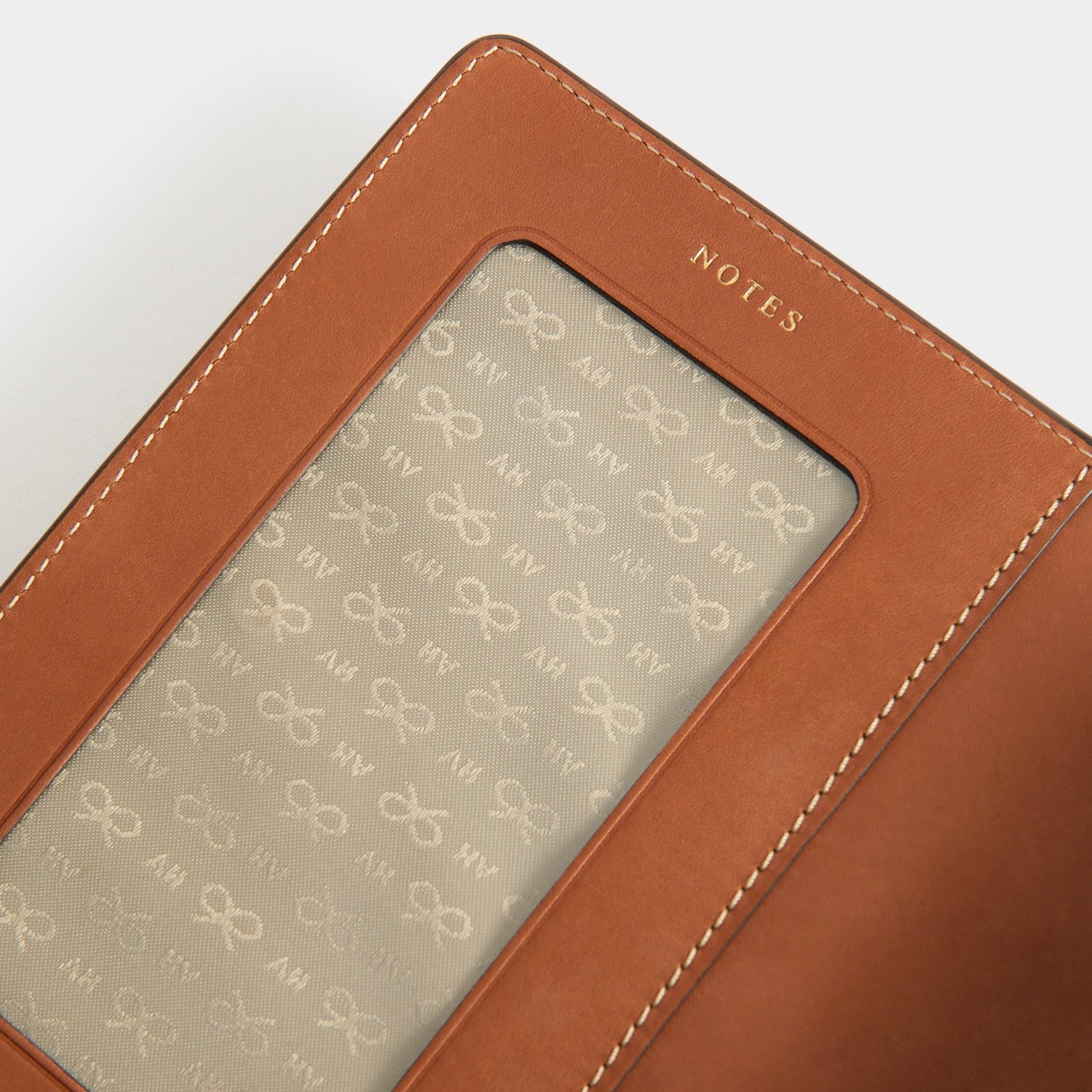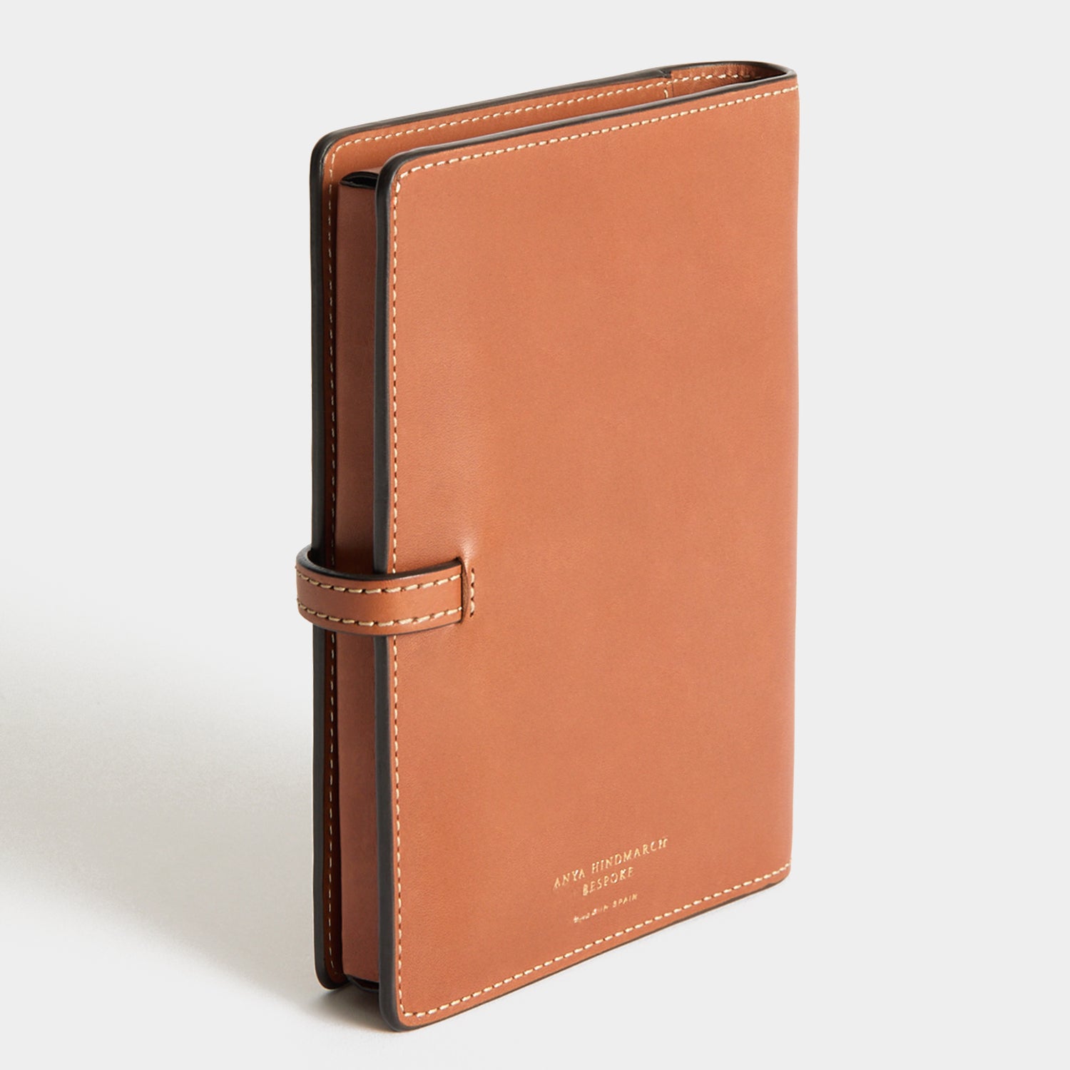 External features: AH embossing on back, snap closure