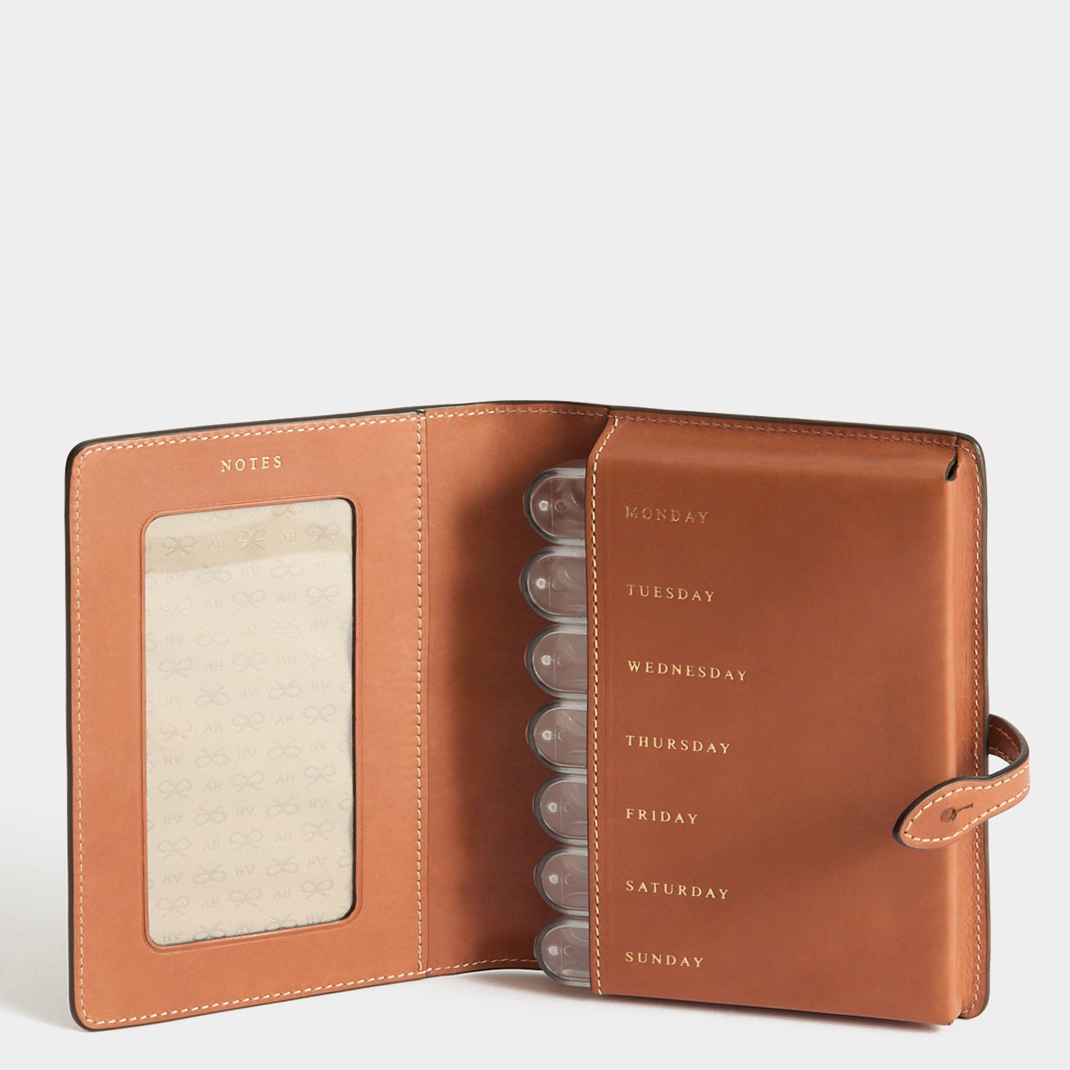 The pills box is an organisational dream for anyone who keeps medicines and vitamins close at hand. The pills box features 7 removable compartments for pills, and a butter soft leather case that can be personalised with embossing or handwriting.