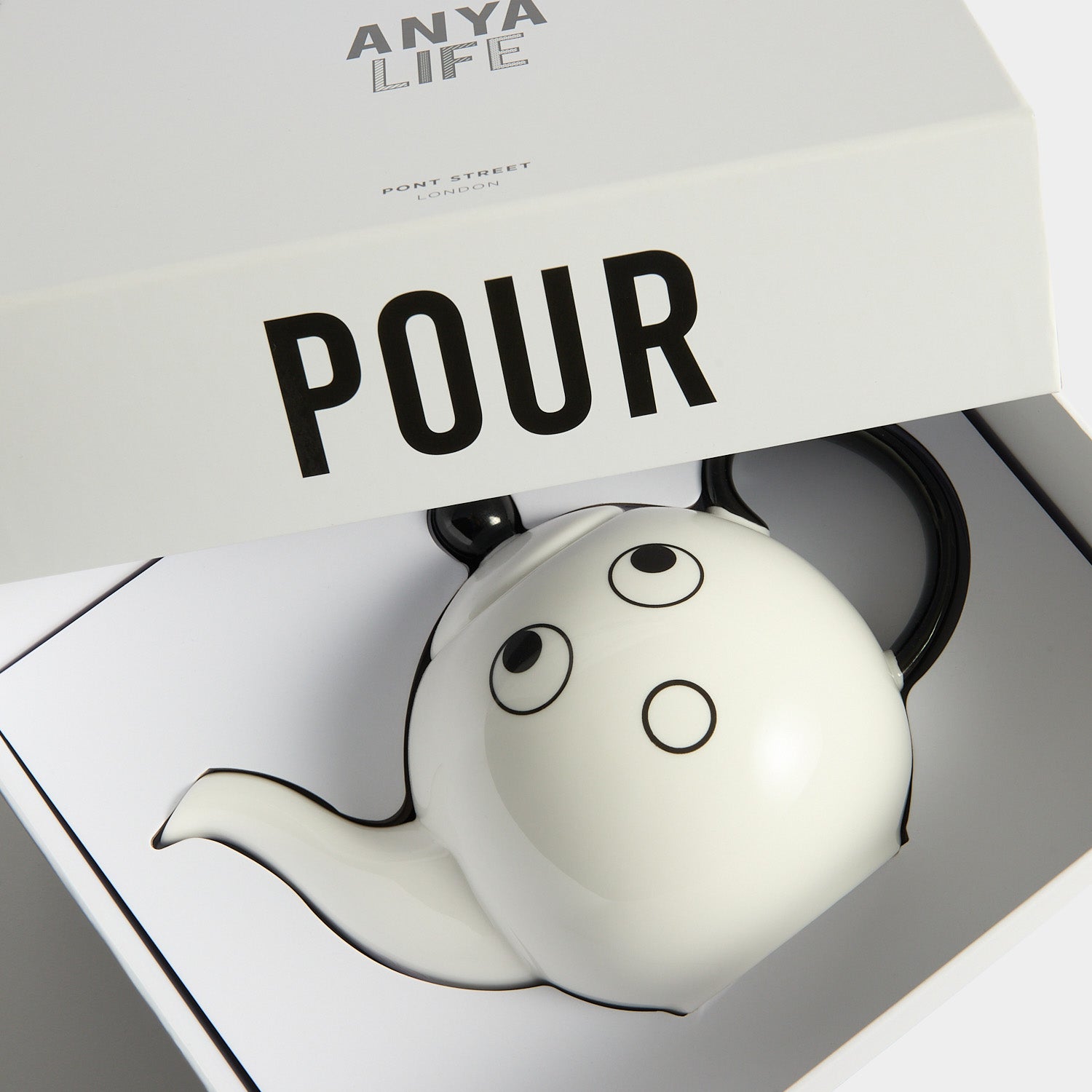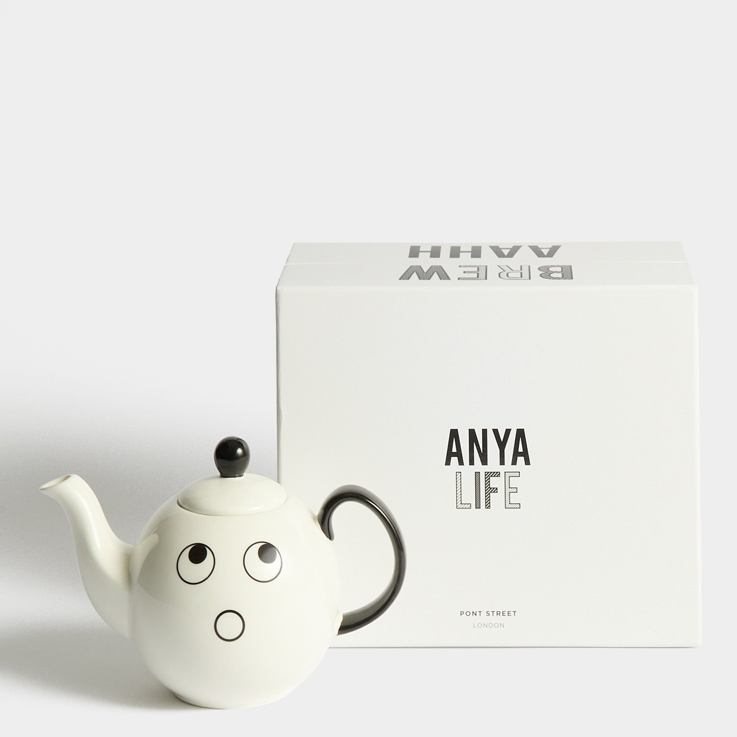 Introducing our first ceramics collection, a line up of playful pieces to add character to your kitchen, to animate your shelves and provide great gifts. Our fresh white designs are hand painted in Stoke-on-Trent, then carefully wrapped into our sleek made-to-keep boxes. Printed with our signature eyes, this teapot makes the perfect gift for yourself or your favourite caffeine addict.