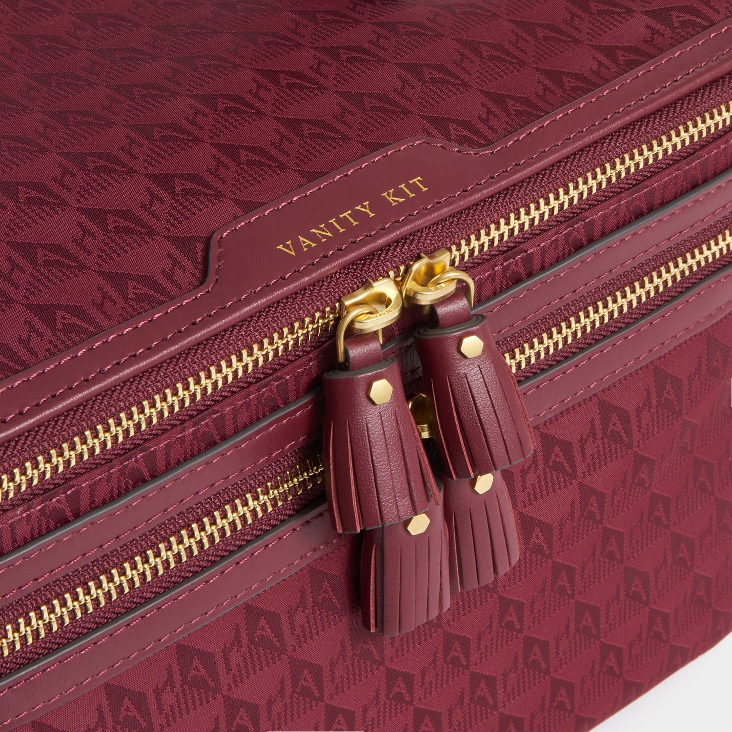 Our Medium Vanity Kit will keep make-up and skincare essentials immaculately organised while you're away from home. In luxurious yet durable nylon, it has two zipped compartments – a shallow section for make-up brushes and other small bits, and a roomier tier for bottles and pots. Tasselled zips, a golden bow and embossed labels finish everything off nicely.
