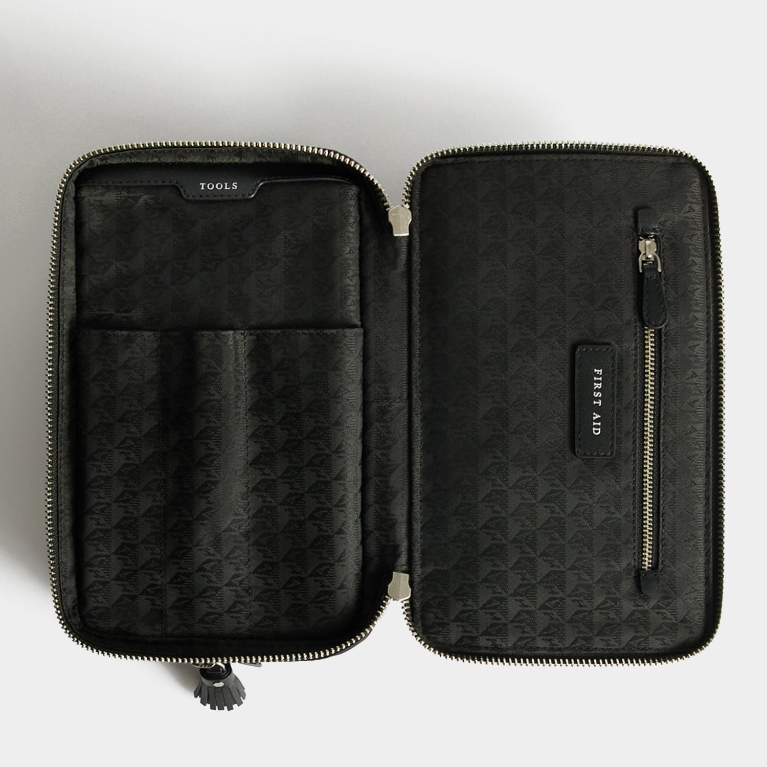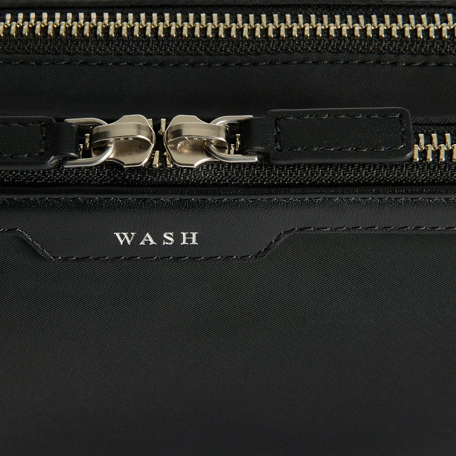 Crafted from ECONYL® regenerated nylon with leather trims and silver zips, our Wash Bag makes a smart – and useful – addition to any man or woman's overnight case. It has two zipped sections – one for bottles and toiletries, and another with designated places for tools (such as a razor, tweezers or brushes) and first aid essentials.