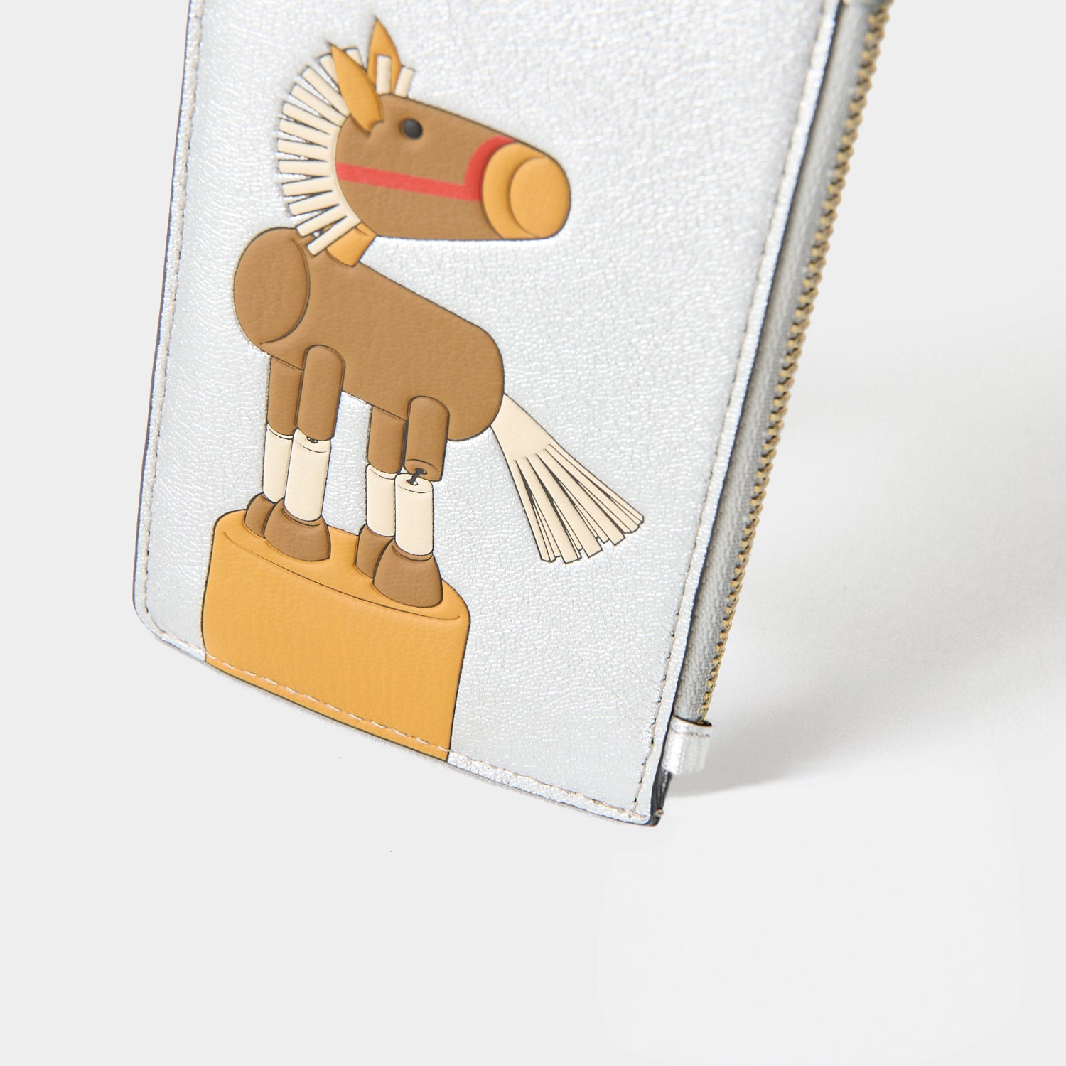 Keep cards and coins organised in the Horse Zip Card Case. Made from silver capra leather, it is fitted with a tassel-zippered pocket for loose change and four labelled slots for cards, while remaining streamlined enough to fit inside small bags. It’s printed with an illustration of a horse push puppet, a toy that reminds us of childhood – and references this Lunar New Year’s zodiac animal.