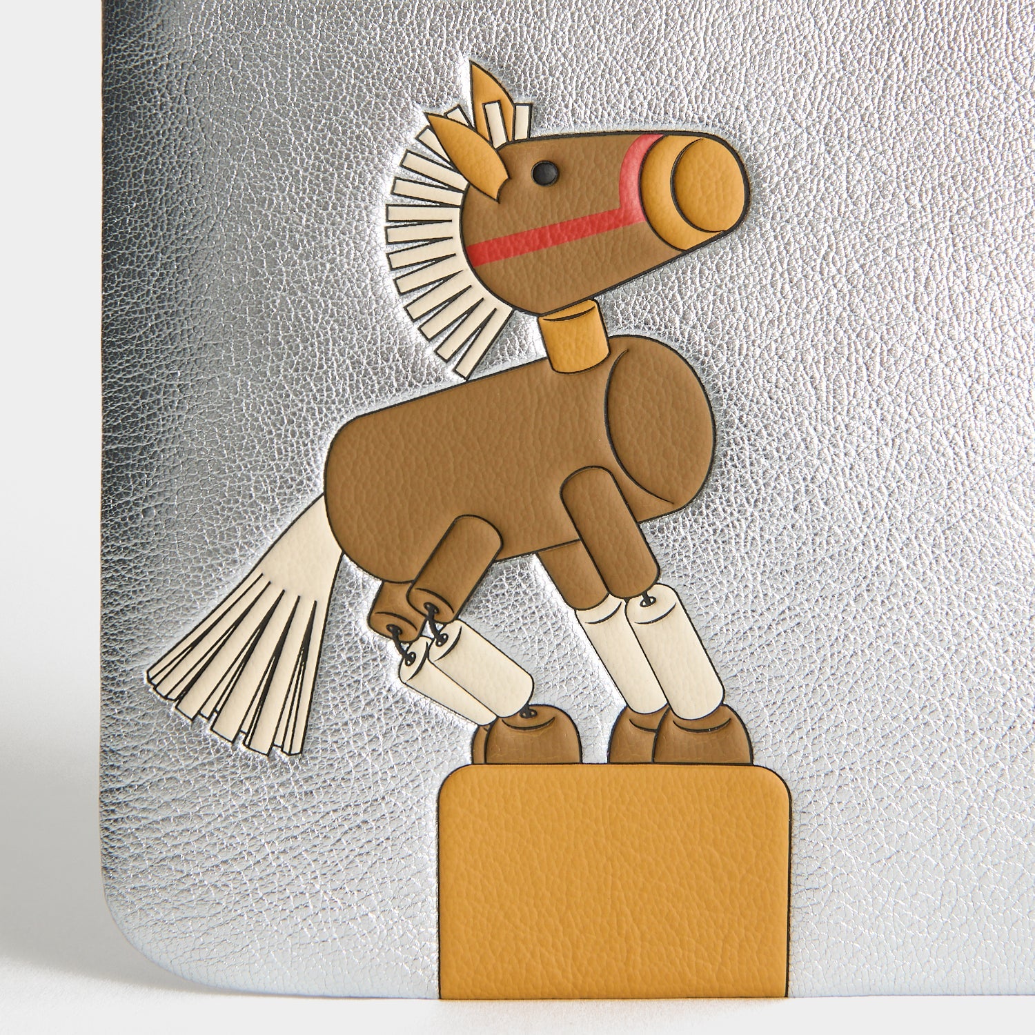 Our Loose Pockets bring organisation to larger totes. Designed to celebrate the Lunar New Year, this one is crafted from silver capra leather and decorated with a retro push puppet toy, a nod to this year’s zodiac animal. It has a handmade tasselled zip pull, and space inside for stationery, essential makeup or other small items.